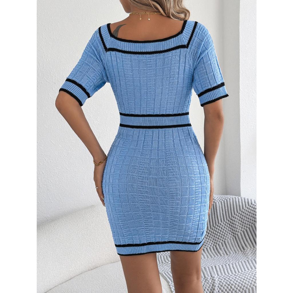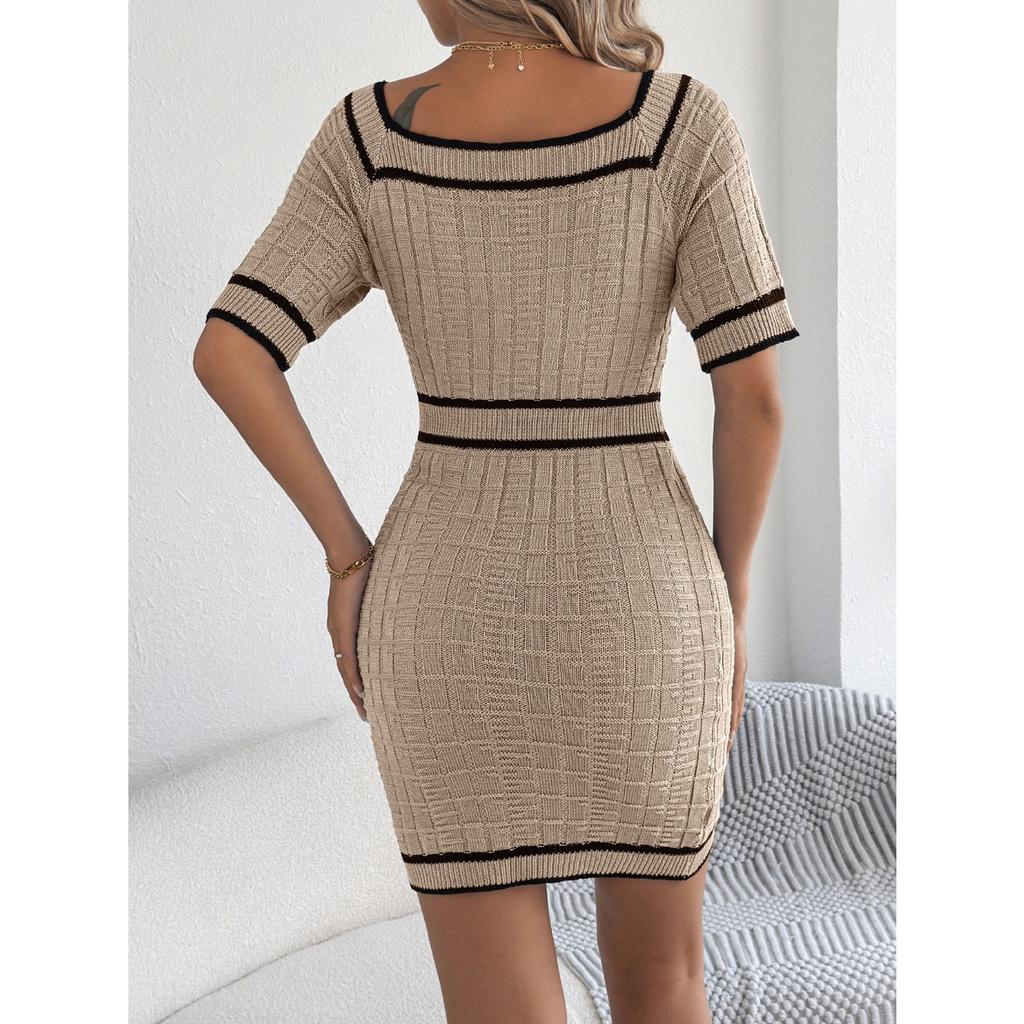 GMXIA Весенне-летнее элегантное платье с квадратным вырезом, на пуговицах, с короткими рукавами, вязаное, облегающее бедра, для женщин
