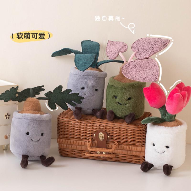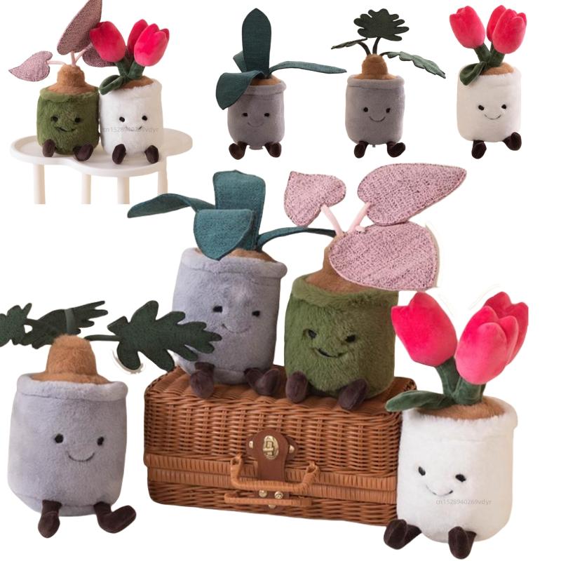 Cute Green Plant Tulip Succulent Plush Pillow Kawaii Monstera Plant Funny Stuffed Animal Soft Huggable Home Decor Birthday Gift