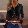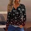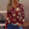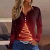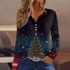 Женская футболка с рождественским принтом на пуговицах с длинным рукавом, повседневная, выходного дня, модная, базовая, с V-образным вырезом, обычная