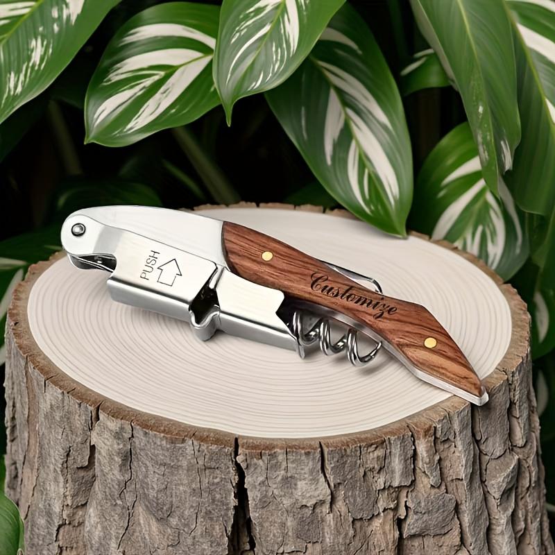 Индивидуально гравированный штопор из нержавеющей стали для вина, пива с деревянной ручкой. Идеально подходит для дома, бара, ресторана. Прекрасный подарок на Рождество, дни рождения, вечеринки.