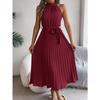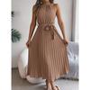 HNXC Весна Лето Элегантное Платье с Воротником-стойкой, Без Рукавов, Приталенное, Плиссированное, Длинное, Женская Одежда