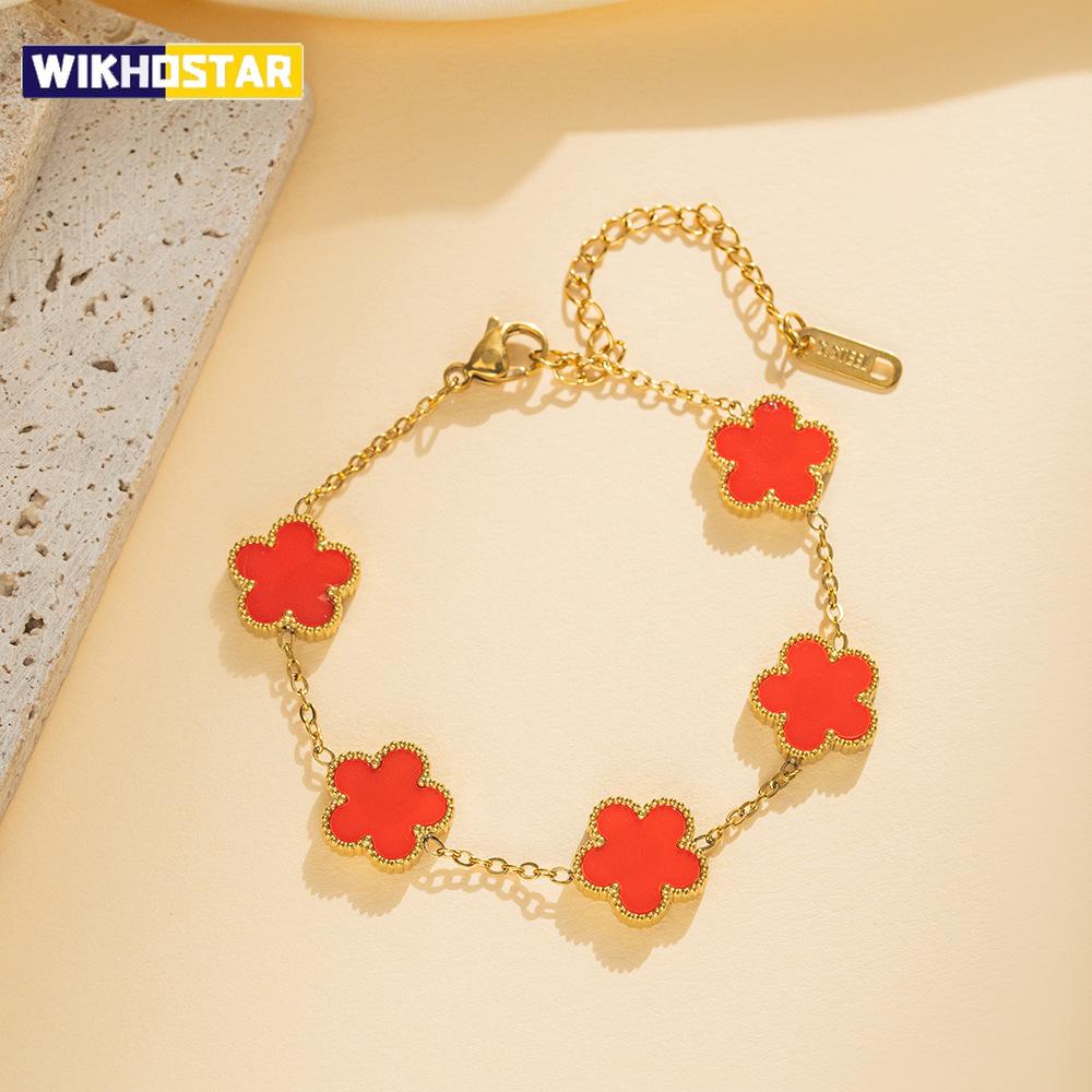 Классический роскошный браслет из нержавеющей стали для женщин, регулируемые браслеты из пяти цветов для женщин, новые модные украшения для вечеринок, подарки, клевер