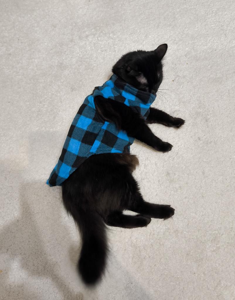 🐾Стильный Комфорт для Вашего Кота Жилетка выполнена из мягкого флиса, идеально подходящего для дополнительного тепла и комфорта. * Дизайн: Классический узор "буффало" в ярких синих и чёрных тонах смотрится очень модно. Видно, что жилетка оснащена D-образным кольцом на спине, что позволяет использовать её как шлейку для крепления поводка. Это отличный аксессуар, сочетающий моду, тепло и функциональность (благодаря креплению для поводка), делая прогулки с вашим питомцем более удобными и безопасными. Рекомендую 👍 Ставлю ⭐ ⭐ ⭐ ⭐ ⭐ Спасибо продавцу ❤️ и Joom ❤️