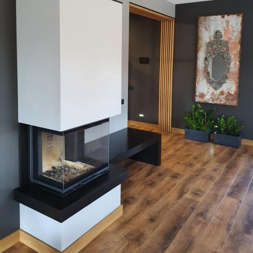 Трехстороннее остекление камина гарантирует максимальную видимость огня.