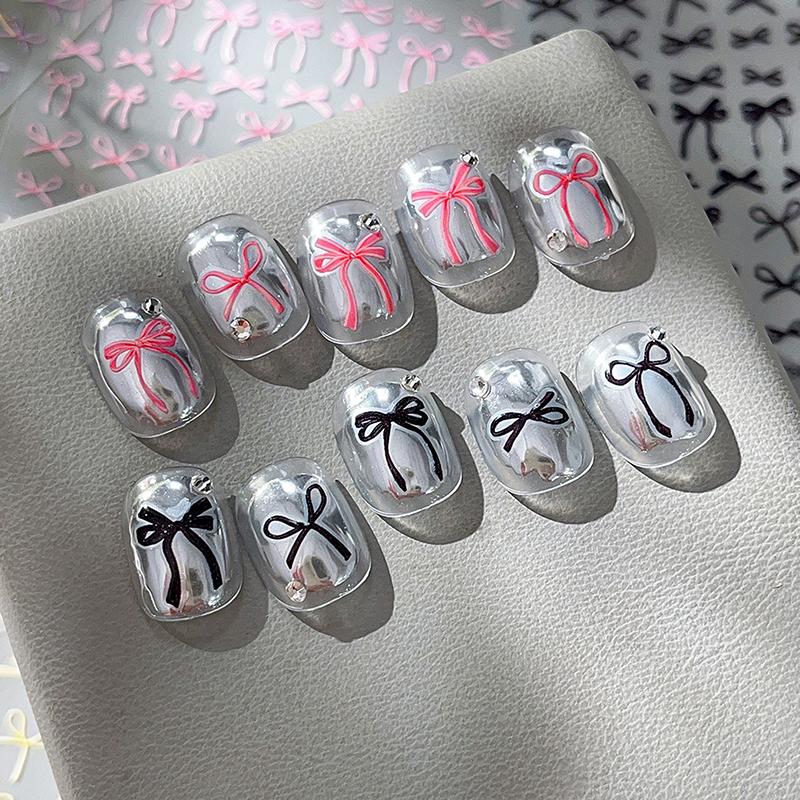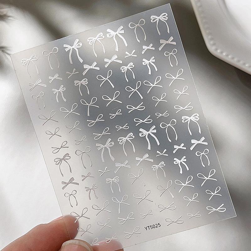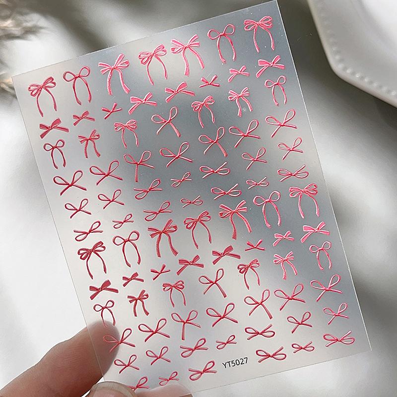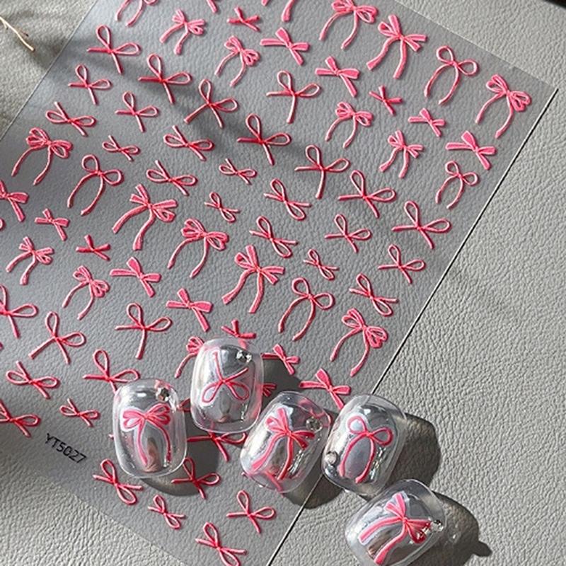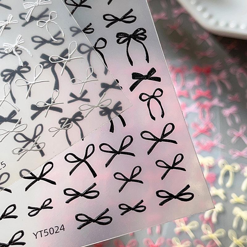 1 лист тисненых наклеек-декалей для ногтей с бантом Y2K, красочные ленты, галстук-бабочка, самоклеящиеся слайдеры, фольга для маникюра, украшение для нейл-арта