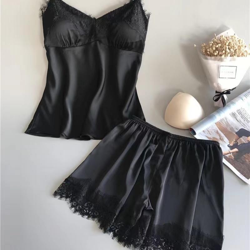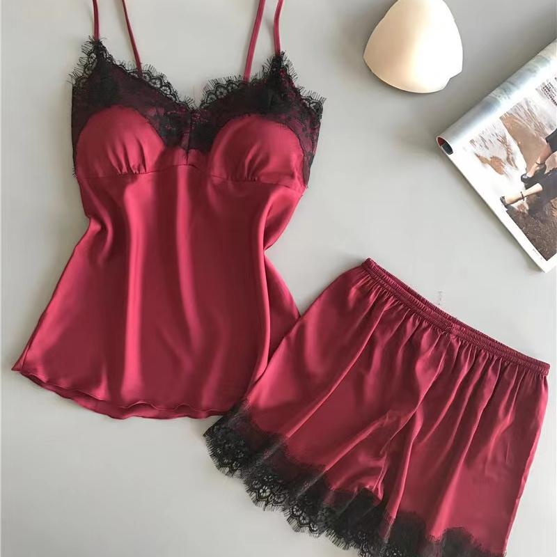 Женский пижамный костюм Модный V-образный вырез Кружево Сексуальное нижнее белье Пижама Комплект шорт для сна Новинка