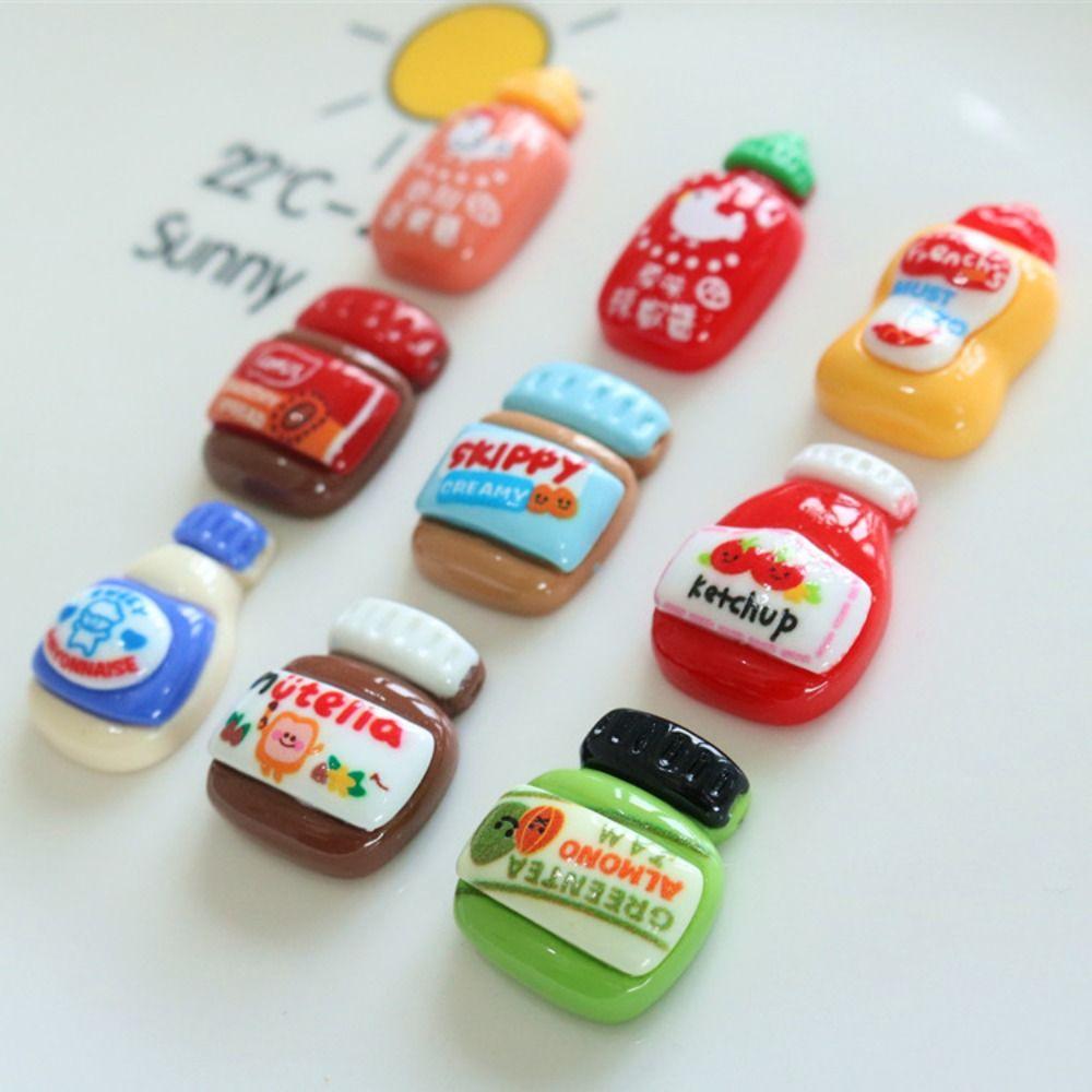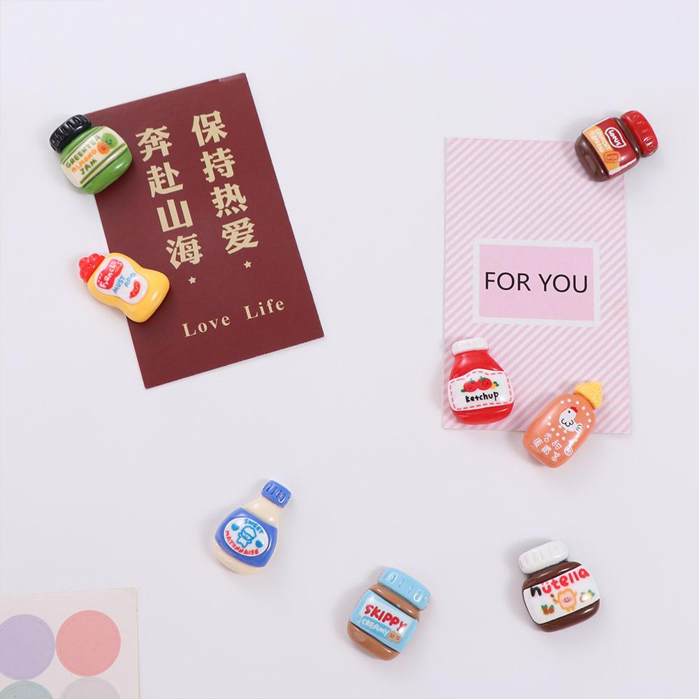 8 шт. Кавайные магниты на холодильник с едой, мультяшные наклейки на холодильник, миниатюры бутылочек с приправами, для шкафчика
