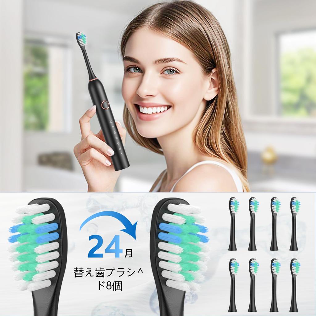 Звуковая электрическая зубная щетка со звуковой вибрацией, 8 сменных щеток, водонепроницаемость IPX7, 6 режимов и чехол для хранения, портативная и идеально подходит для путешествий (SW3)