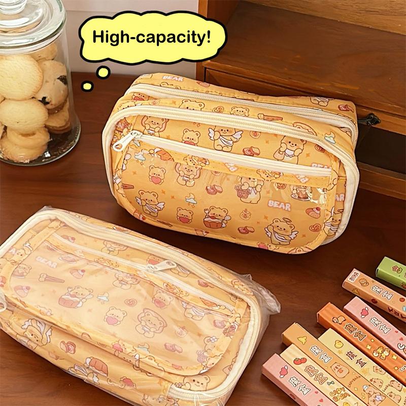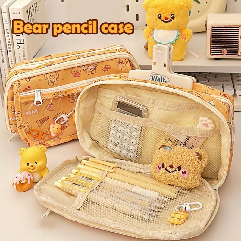 Милый пенал Медвежонок с маслом Большой вместимости Сумка для хранения канцелярских товаров Студенческий пенал Органайзер для канцелярских товаров Дорожная косметичка