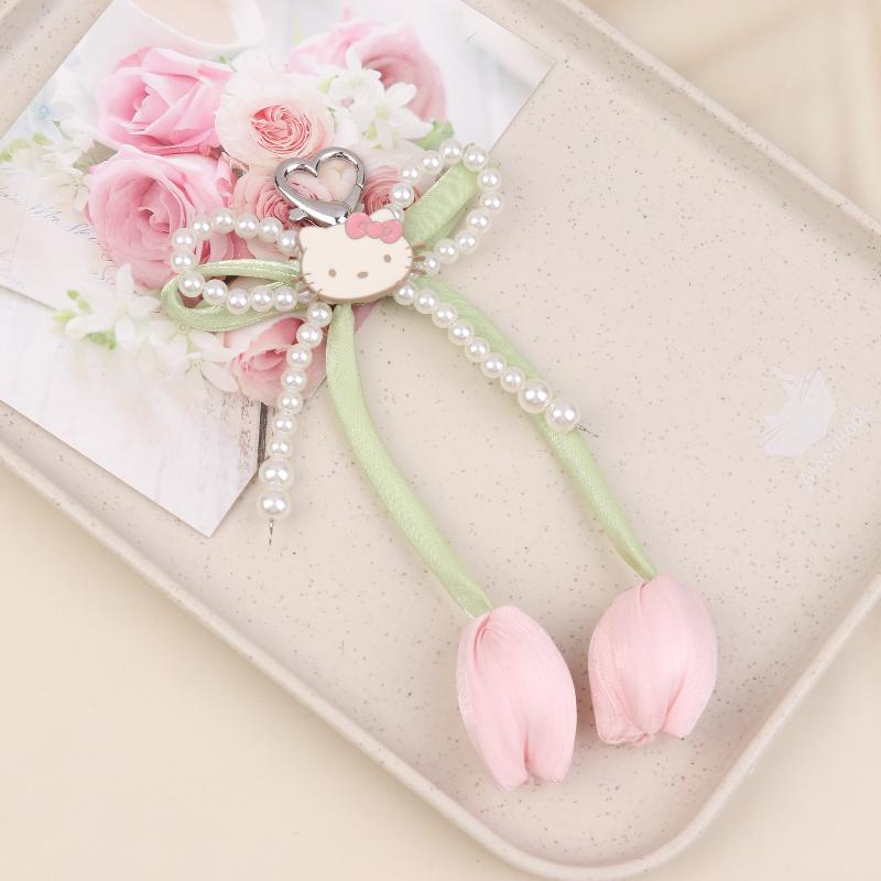 Ins Свежий Тюльпан Hello Kitty Брелок Y2K Модный Милый Имитация Жемчуга Бант Брелок Подвеска для Сумки Украшение для Рюкзака Подарок