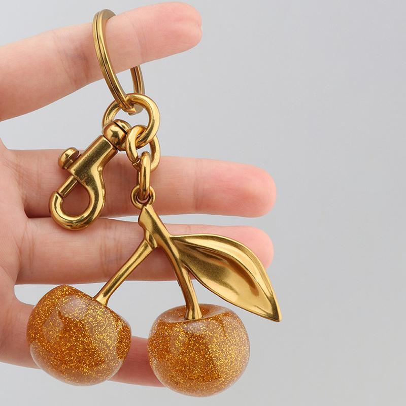 Сверкающая золотая подвеска в виде вишни, украшение для сумки, сумки через плечо, женского кошелька, брелока, волшебного праздничного рождественского аксессуара