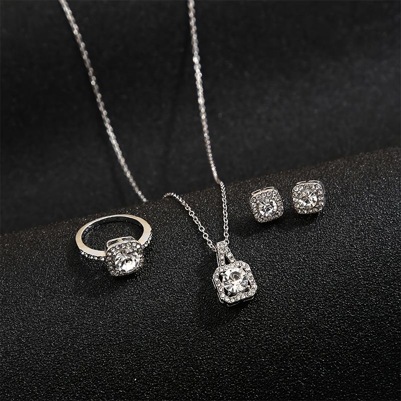 3 шт./комплект роскошный квадратный циркон кулон ожерелье кольцо серьги комплект ювелирных изделий принцесса невеста свадебный банкет подарок