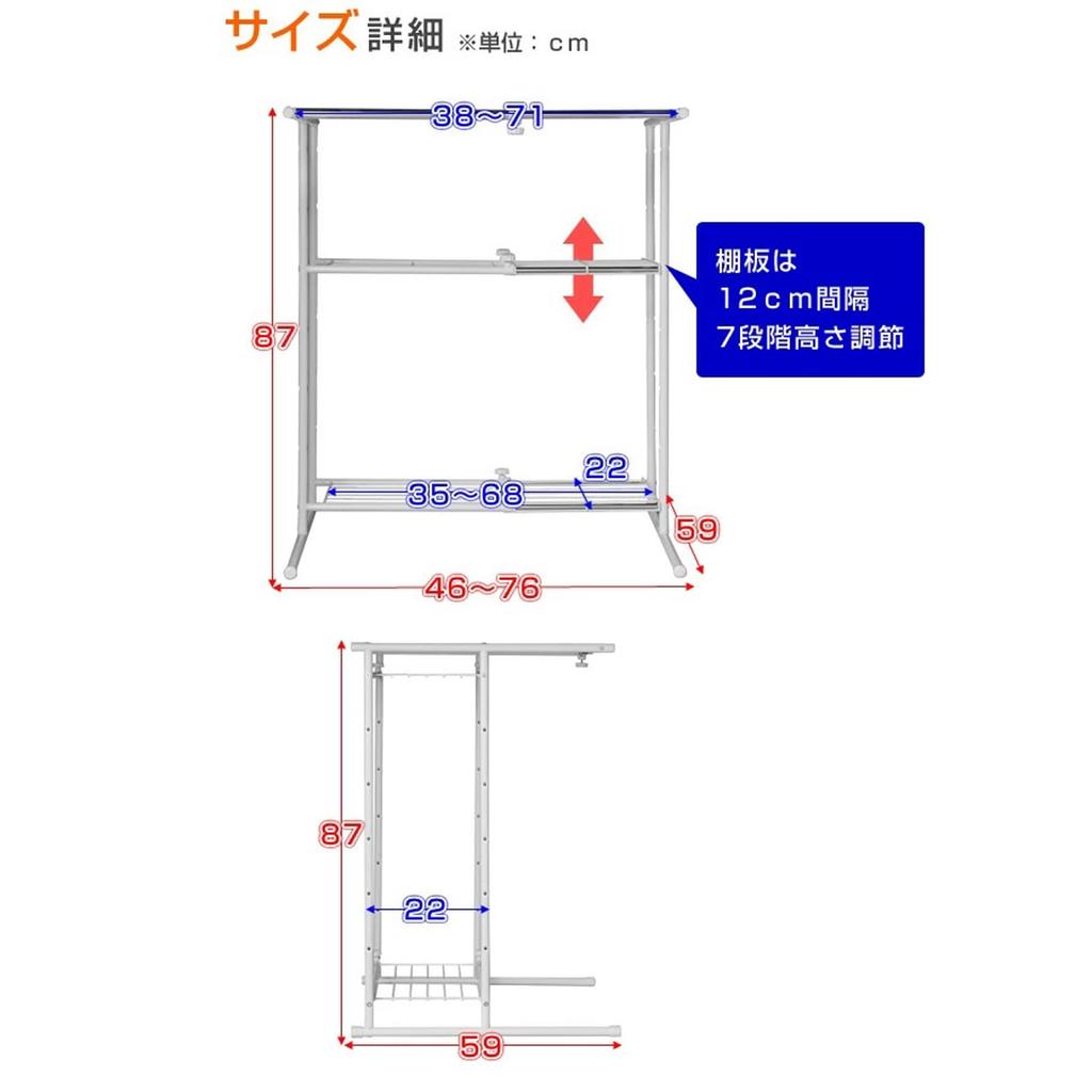YAMAZEN Штанга для одежды с полкой (Ширина: 46-76см), Слоновая кость, OSM-2T(IV)