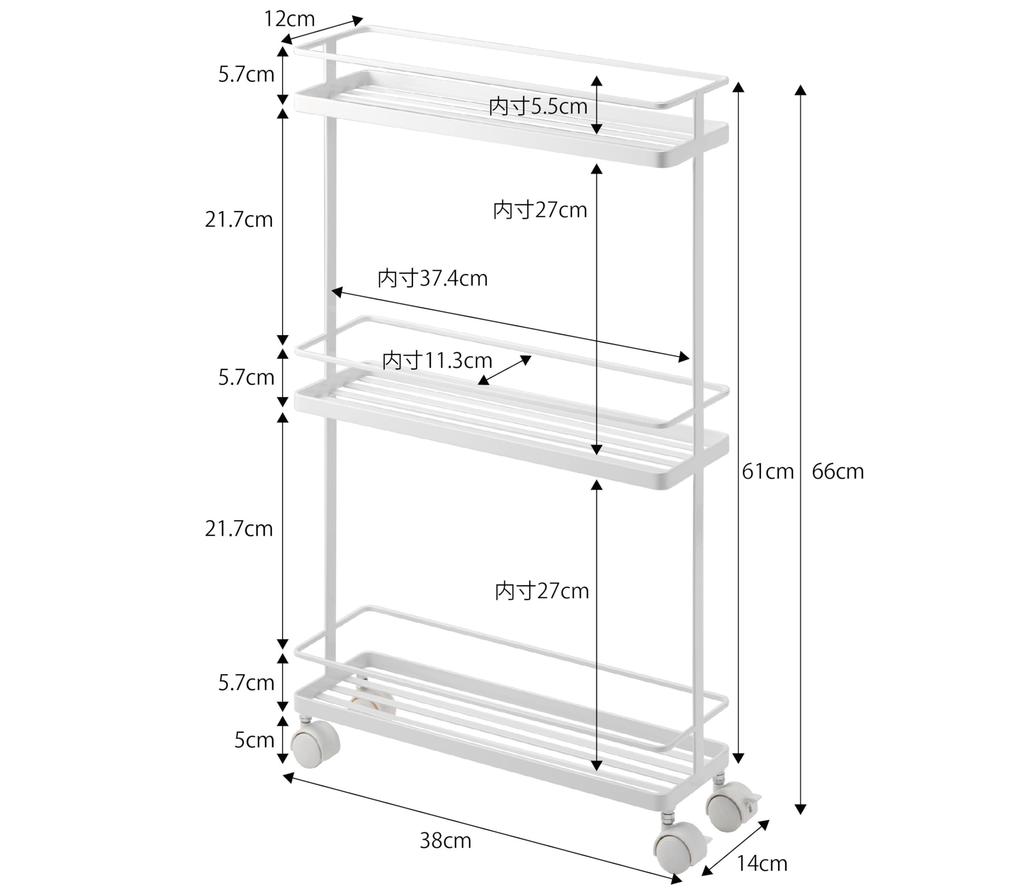 Yamazaki Slim Kitchen Cart, White, Approx. W38 x D12 x H66cm, Tower [Assembly Required: Casters and Hooks Attached] 7151