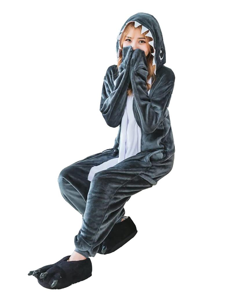 Dorawithme Пижама Кигуруми Акула для взрослых, Костюм для косплея животного на Хэллоуин и Рождество, Унисекс (Маленький)