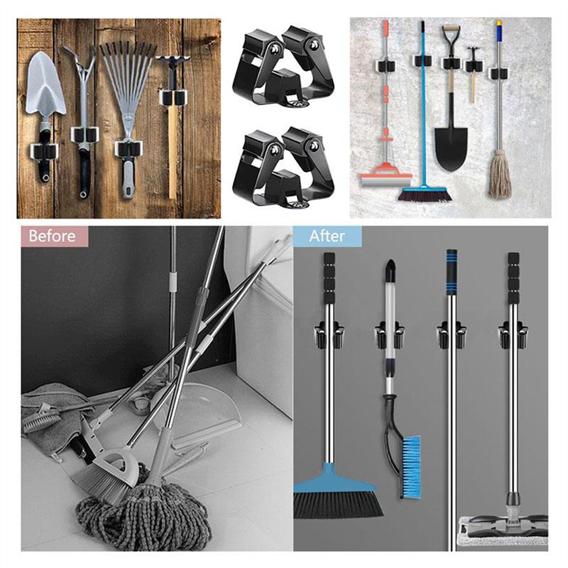 1. Многофункциональное решение для хранения: Этот настенный держатель может безопасно хранить и организовывать различные бытовые инструменты, такие как веники, швабры, садовый инвентарь и т. д., чтобы ваше пространство выглядело аккуратным и чистым.