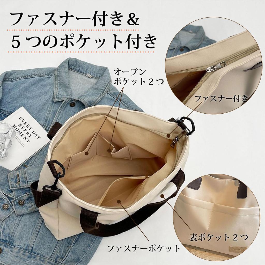 FairyPomu Canvas Shoulder Bag, Tote Bag, Crossbody Bag, A4 Size, for Men and Women (Light Brown)