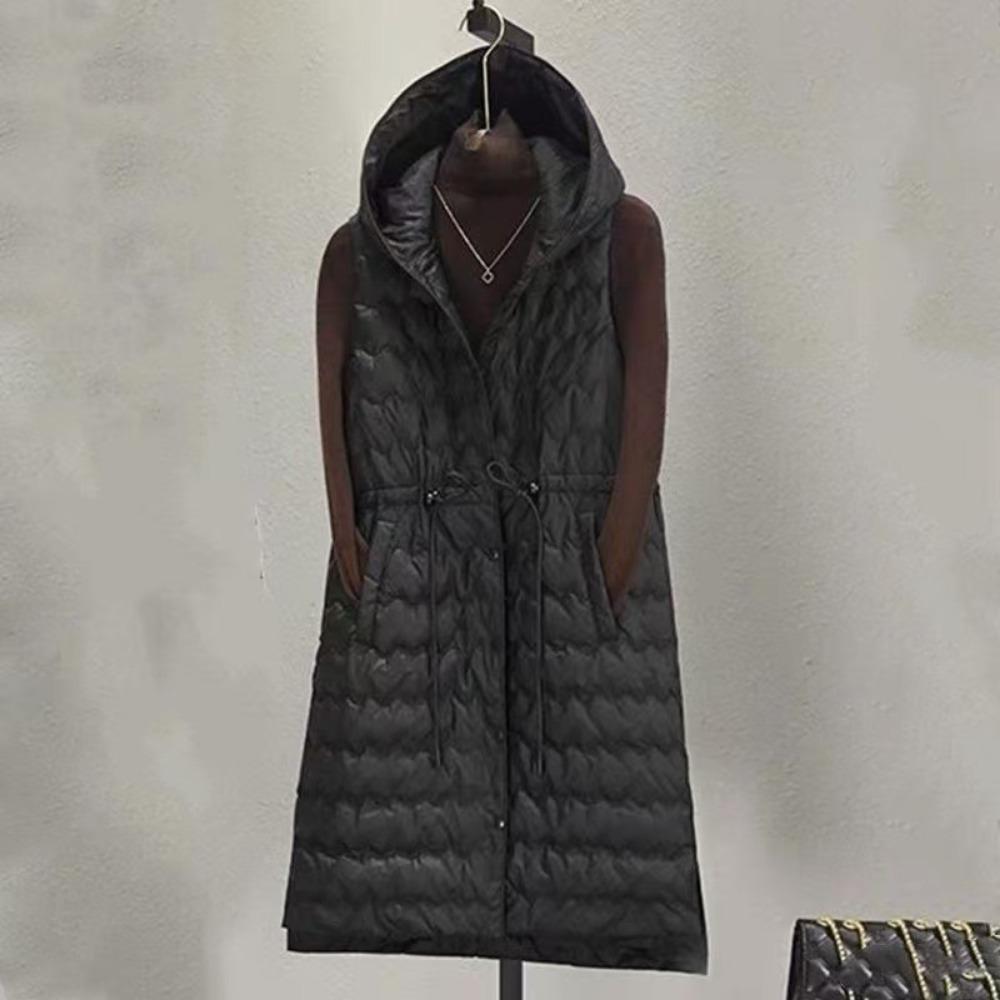 Зимний женский ультралегкий длинный пуховик с капюшоном, женский повседневный приталенный жилет с поясом