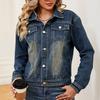 Женская модная универсальная классическая ретро джинсовая куртка однотонного цвета с лацканами, длинными рукавами и карманами