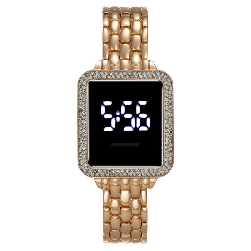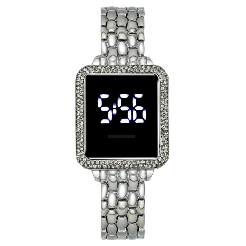 Модные женские часы со светодиодной подсветкой, инкрустированные бриллиантами, женские часы-признание, сенсорный дисплей, электроника