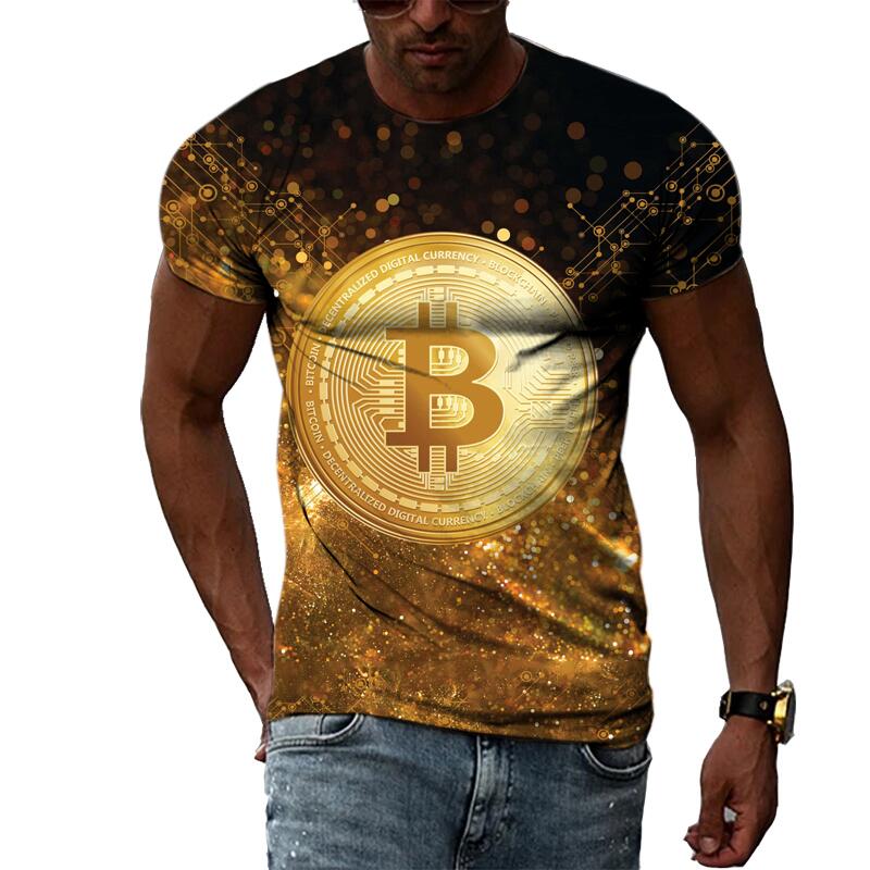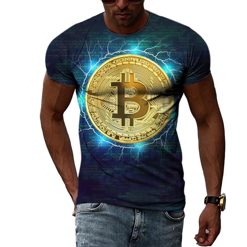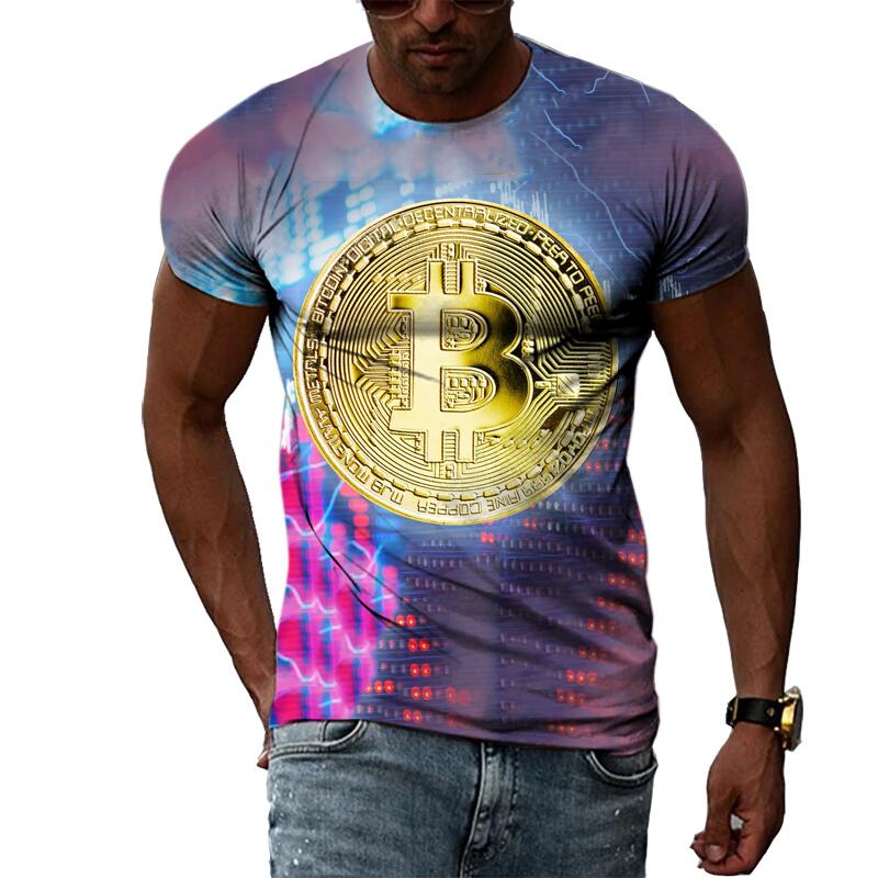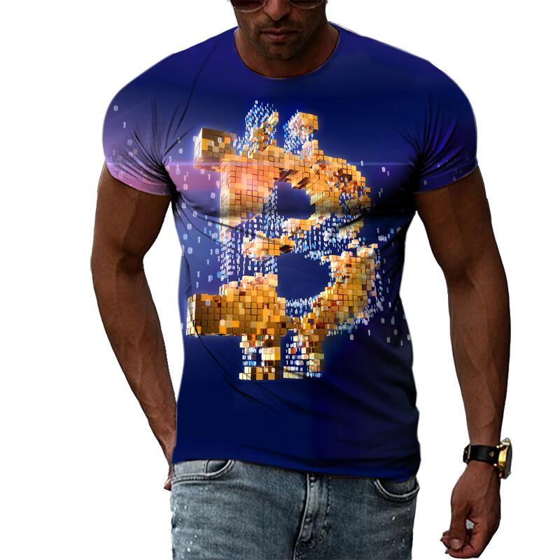 Летняя мода Абстрактная футболка с 3D-принтом Биткоина Хип-хоп Харадзюку Личность Круглый вырез Короткий рукав Повседневные мужские футболки