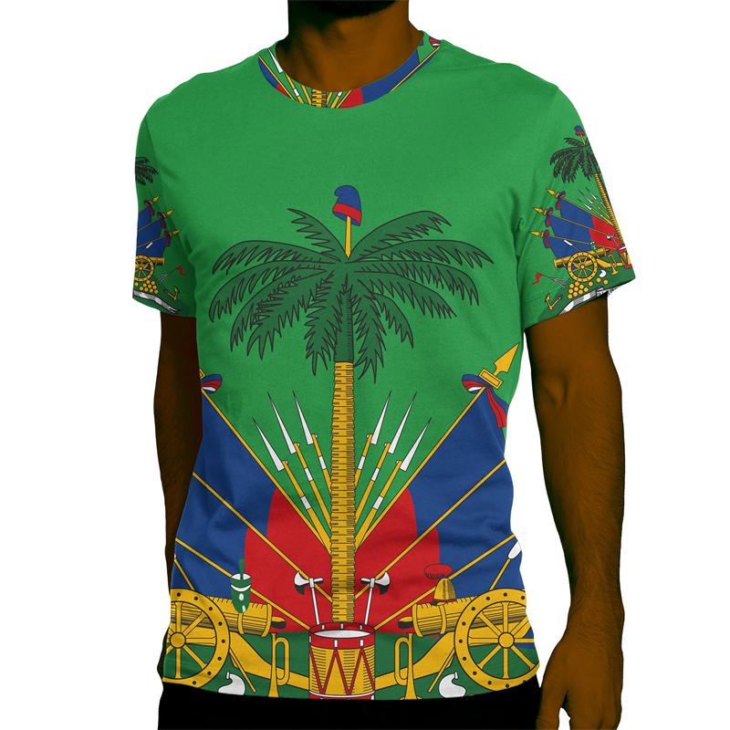 Гаити Национальный Герб Графические Футболки Для Мужчин Одежда 3D Принтованные Футболки Летние Повседневные Свободные Оверсайз Футболки С Короткими Рукавами Топы