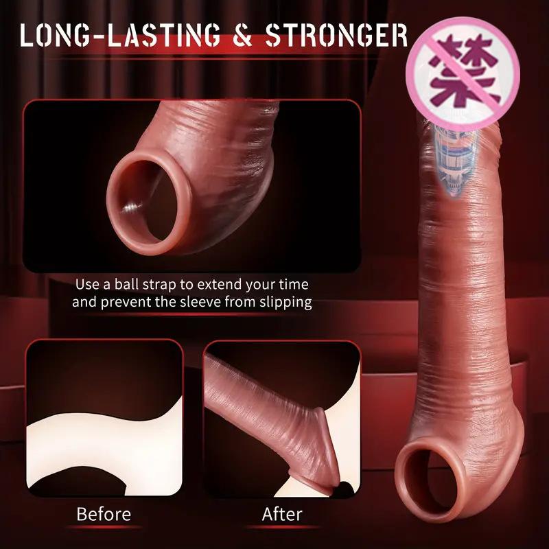 С вибратором Реалистичная насадка-дилдо Удлиненная Большая Толстая Ультра Текстура Кожи Пениса Секс-игрушки для мужчин