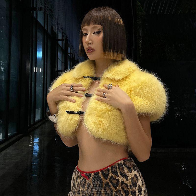 Женская одежда Осень и Зима Новинка Однотонный Пушистый Жилет из Лисы Безрукавка Суперкороткий