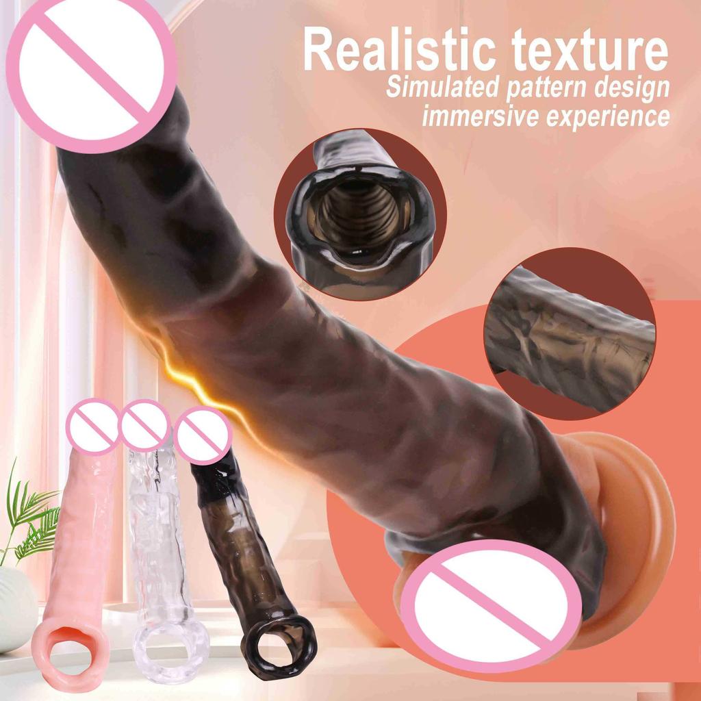 Многоразовый презерватив, рукав для удлинения пениса, эластичное кольцо для пениса, задержка эякуляции, насадка на пенис, удлинитель пениса, бондаж, секс-игрушки для мужчин