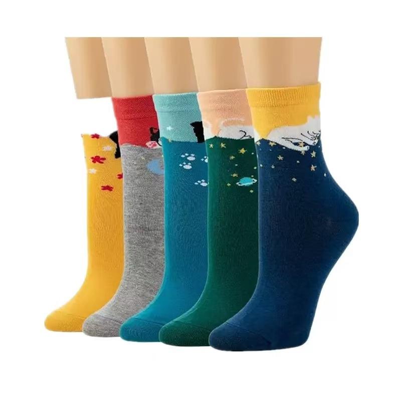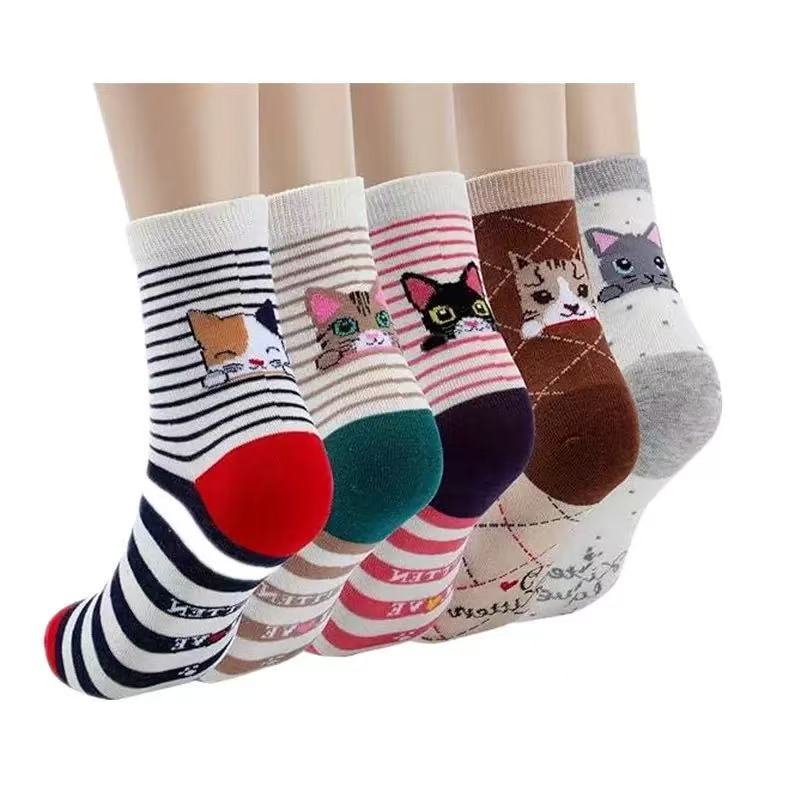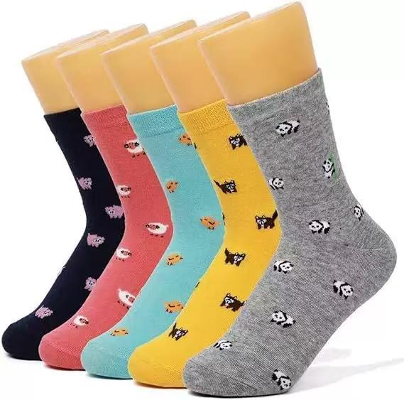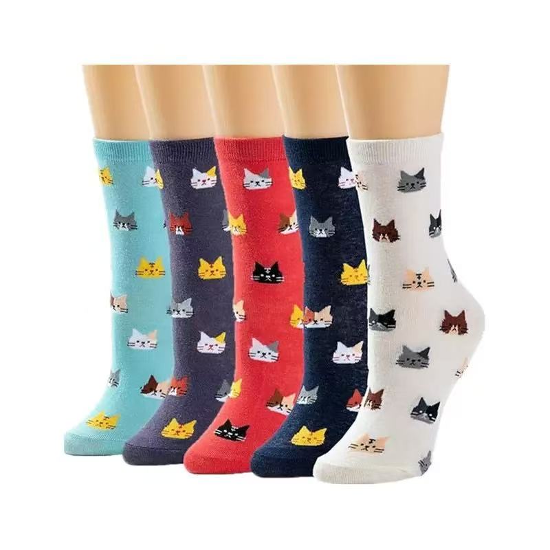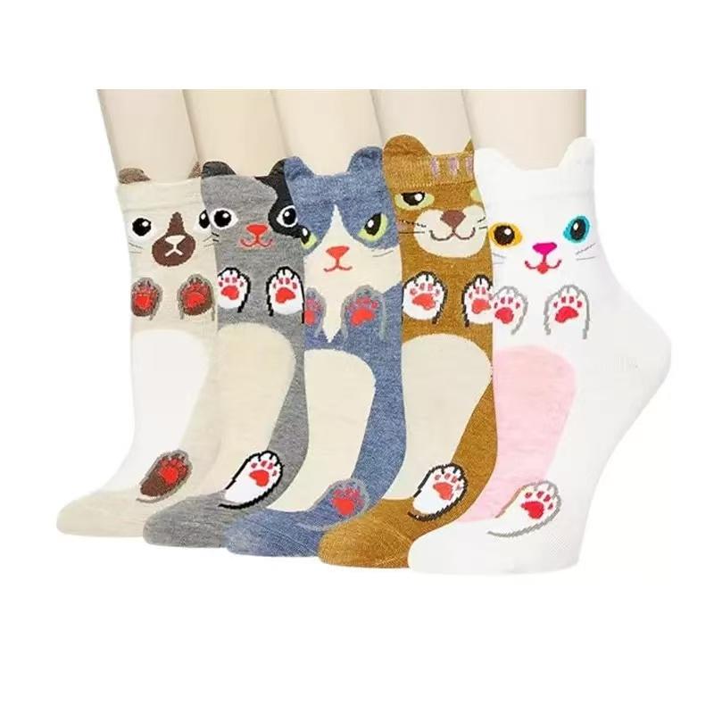 Прекрасные женские принты с животными, 5 пар повседневных носков с кошками и собаками