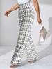[Эластичные расклешенные брюки] Эластичные женские брюки клеш в черно-белую клетку с высокой посадкой | Повседневные брюки для весны/лета/осени | Брюки с глянцевой отделкой