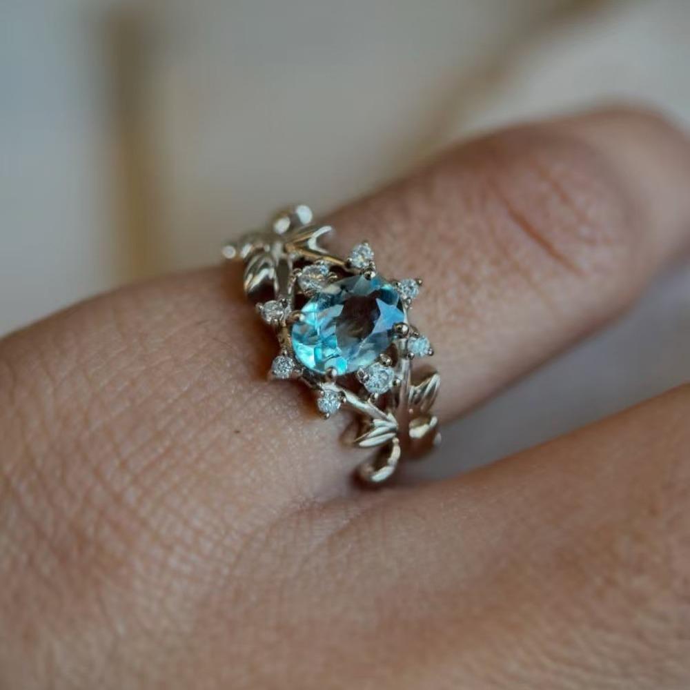 Роскошное новое позолоченное кольцо с аквамарином, креативное женское кольцо в форме листа, простое и модное — купить товар онлайн с бесплатной доставкой по всему миру!