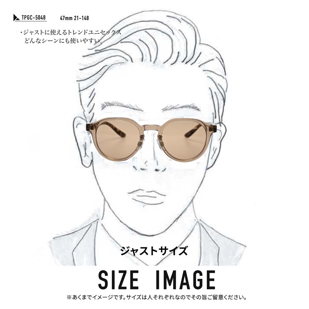 Model No.: TPGC-5048, available in 3 colors, Size: 47□21-148, Material: Lightweight resin frame, Lens: Acrylic UV protection, Country of origin: China