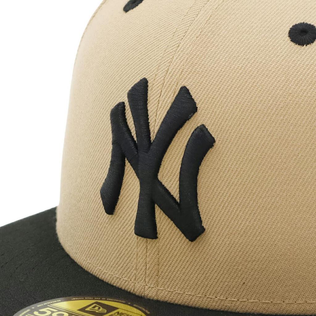 New Era 59FIFTY Cap MLB New York Yankees NY Camel Beige 7 ONSPOTZ Exclusive and 5950 Straight Flat Visor Unisex Summer Sun Protection UV Protection