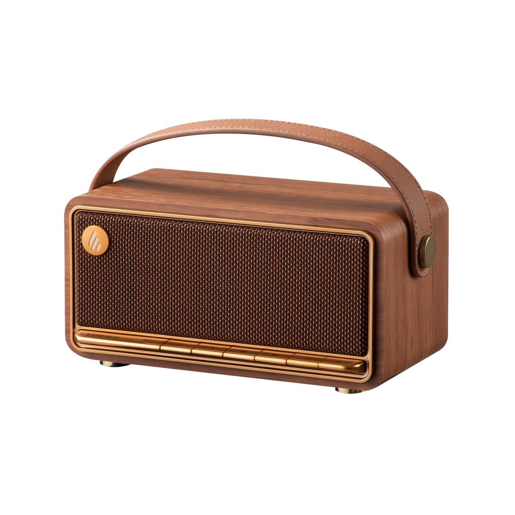 Портативная Bluetooth-колонка Edifier MP330, Компактная, Лауреат летней золотой награды VGP2025 и награды «Лучшее соотношение цены и качества», Беспроводная/проводная, Аудио высокого разрешения, 19 часов воспроизведения, Перезаряжаемая, Bluetooth 6.0, USB-C, SD-карта и совместимость с приложением, МДФ, Ретро-дизайн с ручкой, Коричневая