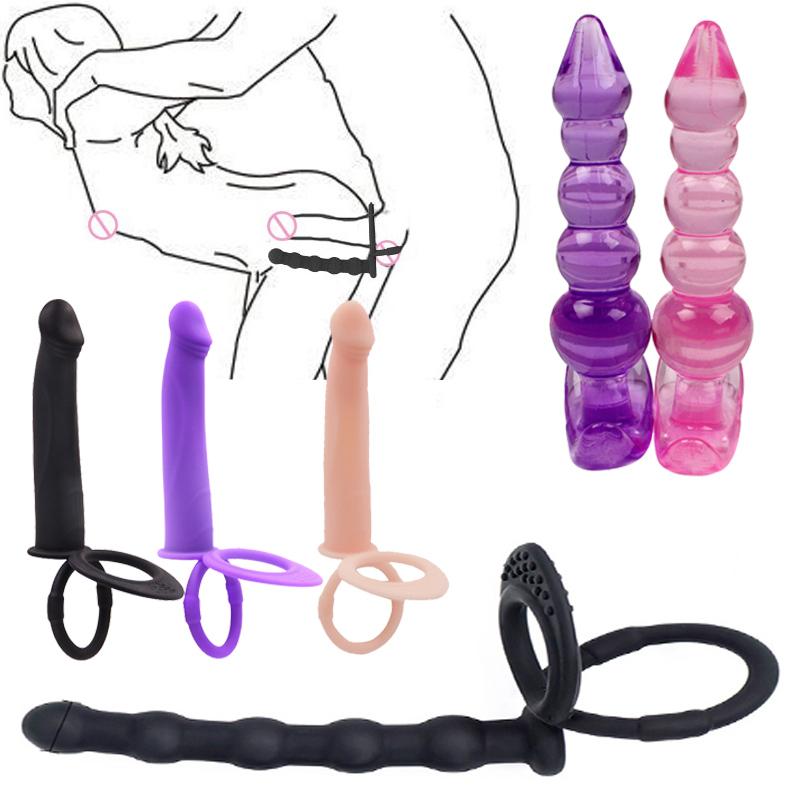 Двойное проникновение Дилдо Пенис Вибратор Секс-игрушки для пар Анальные бусы Анальная пробка Сексуальное кольцо Массажер точки G для мужчин Геи Взрослые 18