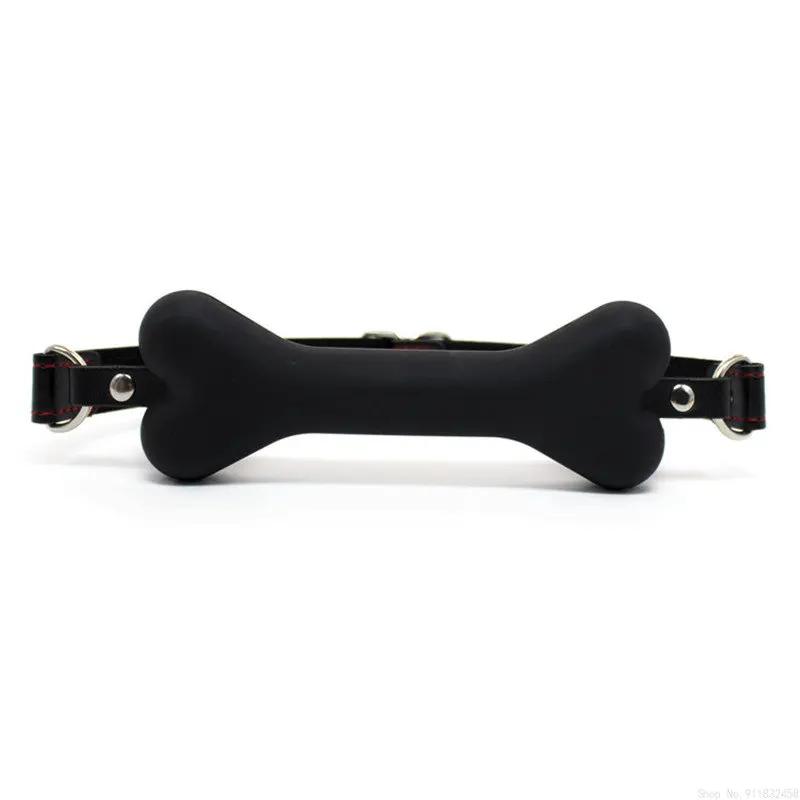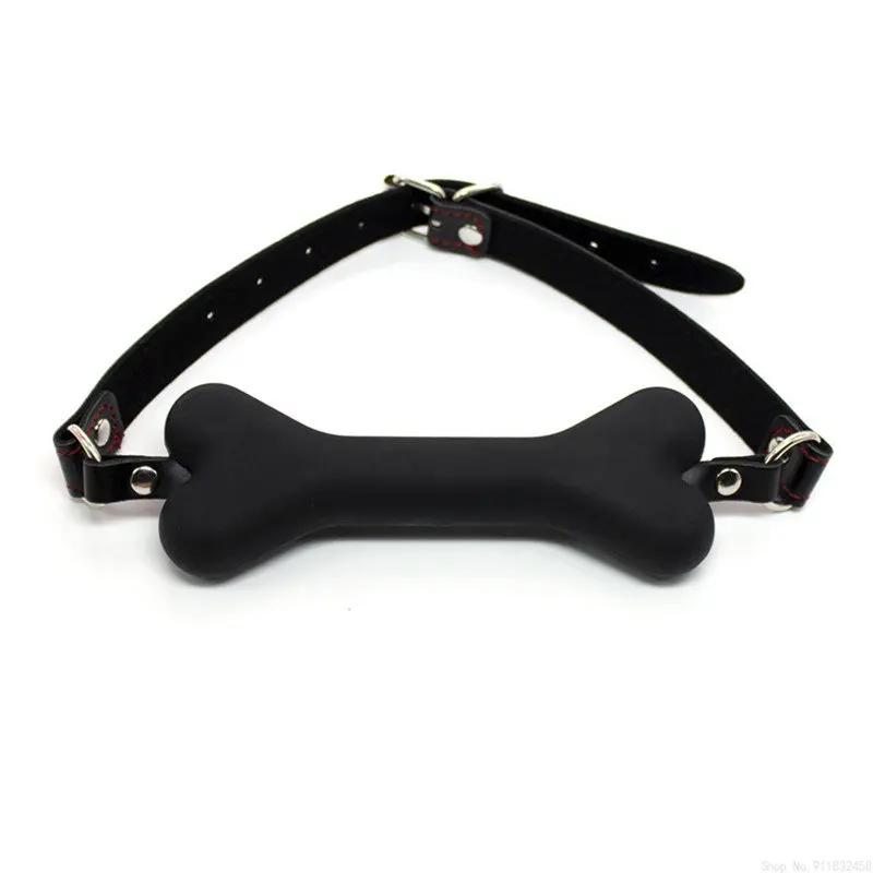 Cute Solid Leather Harness Mouth Silicone Dog Bone Ball Gag Mouth Plug Couples Flirting Sex Products For Women