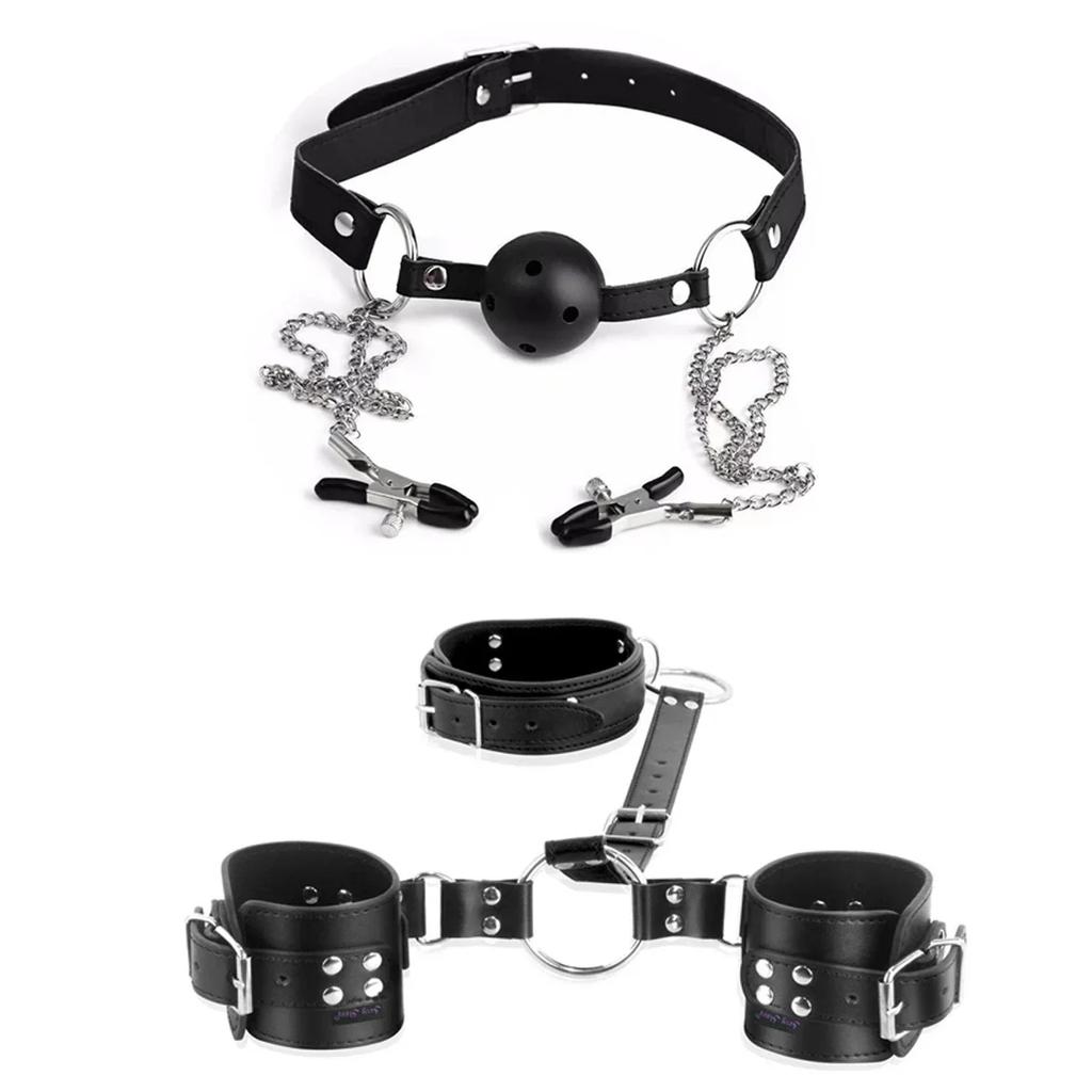 Комплект наручников от шеи до запястий с зажимами для сосков, кляпом, секс-игрушками для женщин, регулируемыми наручниками на спине, ошейником, бондажем, SM секс-игрушками