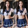 Косплей, сексуальная, милая школьница, униформа для ролевых игр, женский соблазнительный комплект с бюстгальтером без вырезов, страстный комплект с плиссированной юбкой открытого стиля