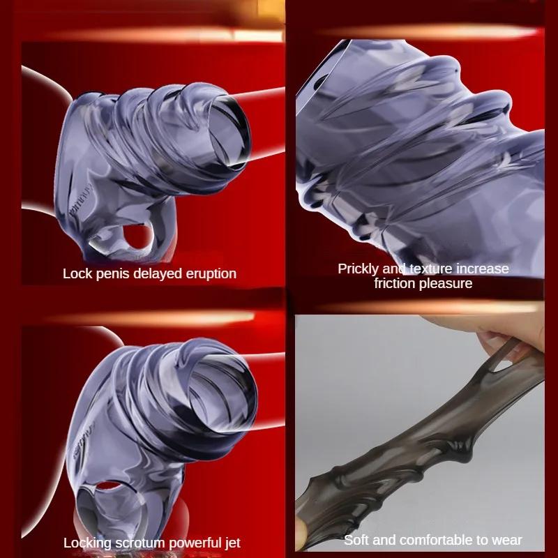 Мужское кольцо для пениса с задержкой эякуляции, увеличение пениса, насадка для пениса, клетка целомудрия для мужского члена, кольцо на пенис, секс-игрушки для мужчин