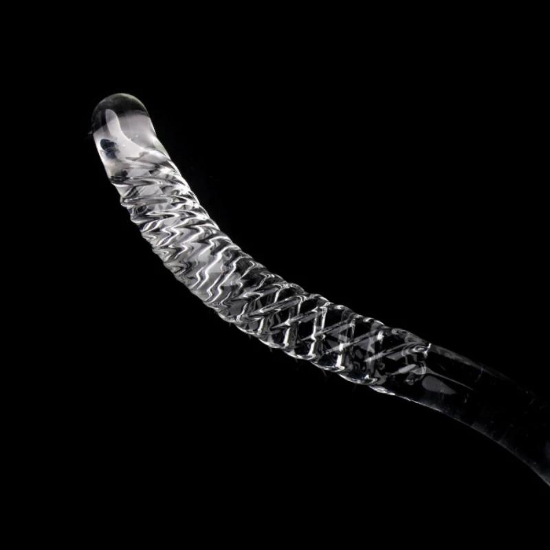 Double Ended Crystal White Pyrex Glass Dildo Artificial Penis Granule Spiral G Spot massager Adult game Sex Toys for Woman Gay