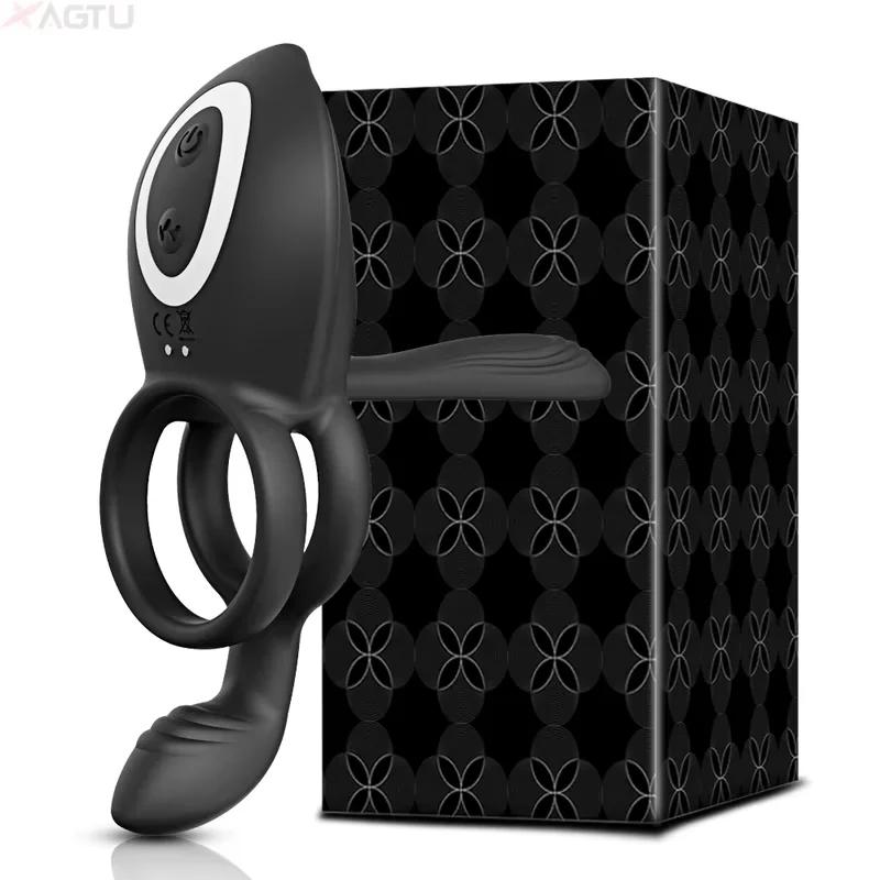 Вибрирующее кольцо на член с пультом дистанционного управления – Двойная стимуляция для мужчин и пар, Задержка эякуляции, Клетка целомудрия и удовольствие клитора, Секс-игрушка