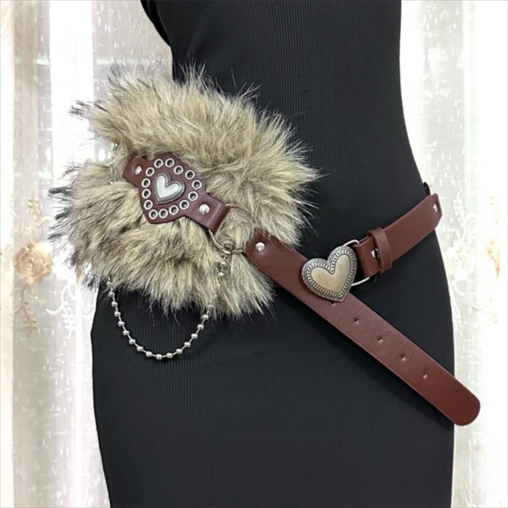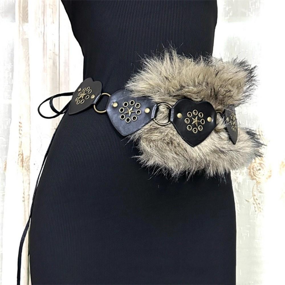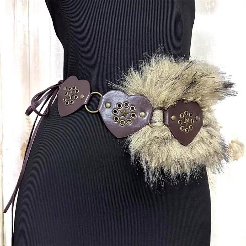 Patchwork Heart Waist Belt Faux Fur Brown Rivet Belt Fashion Women Waistband Waist Accessories