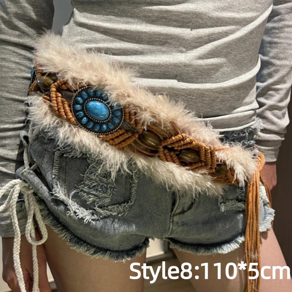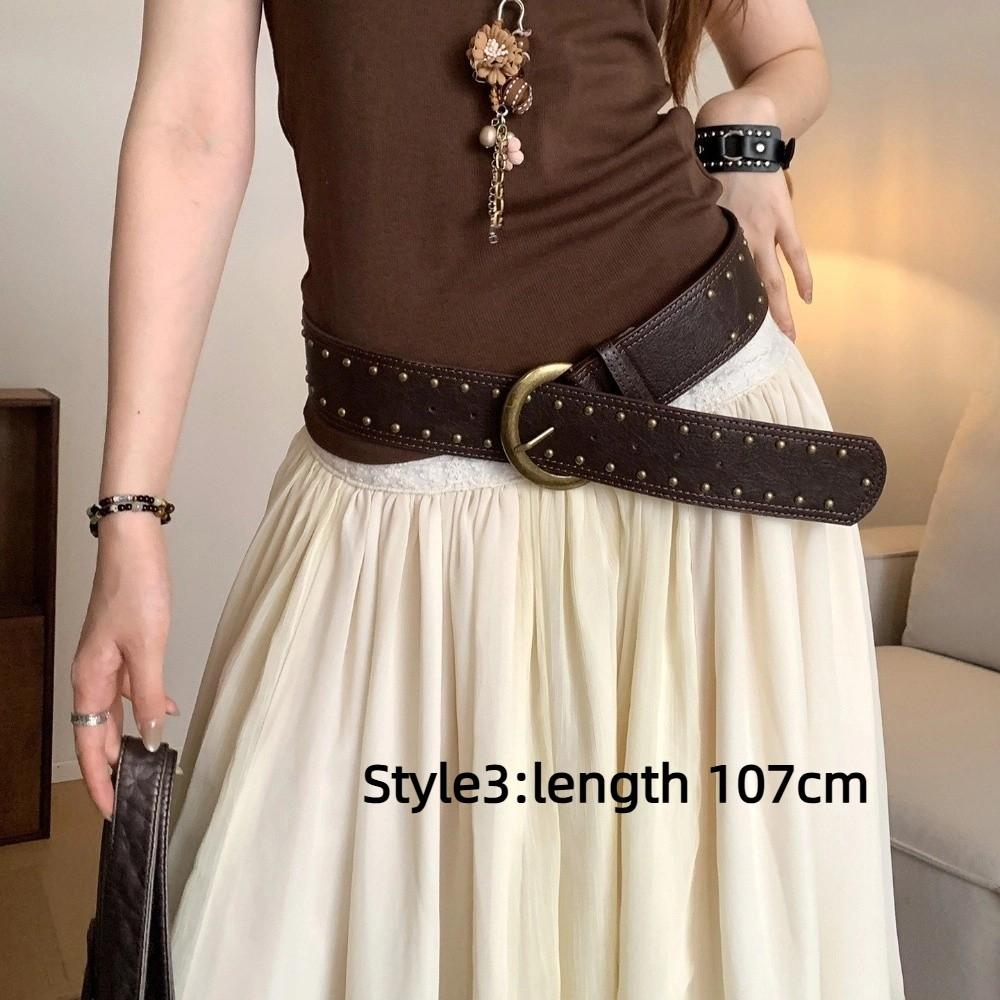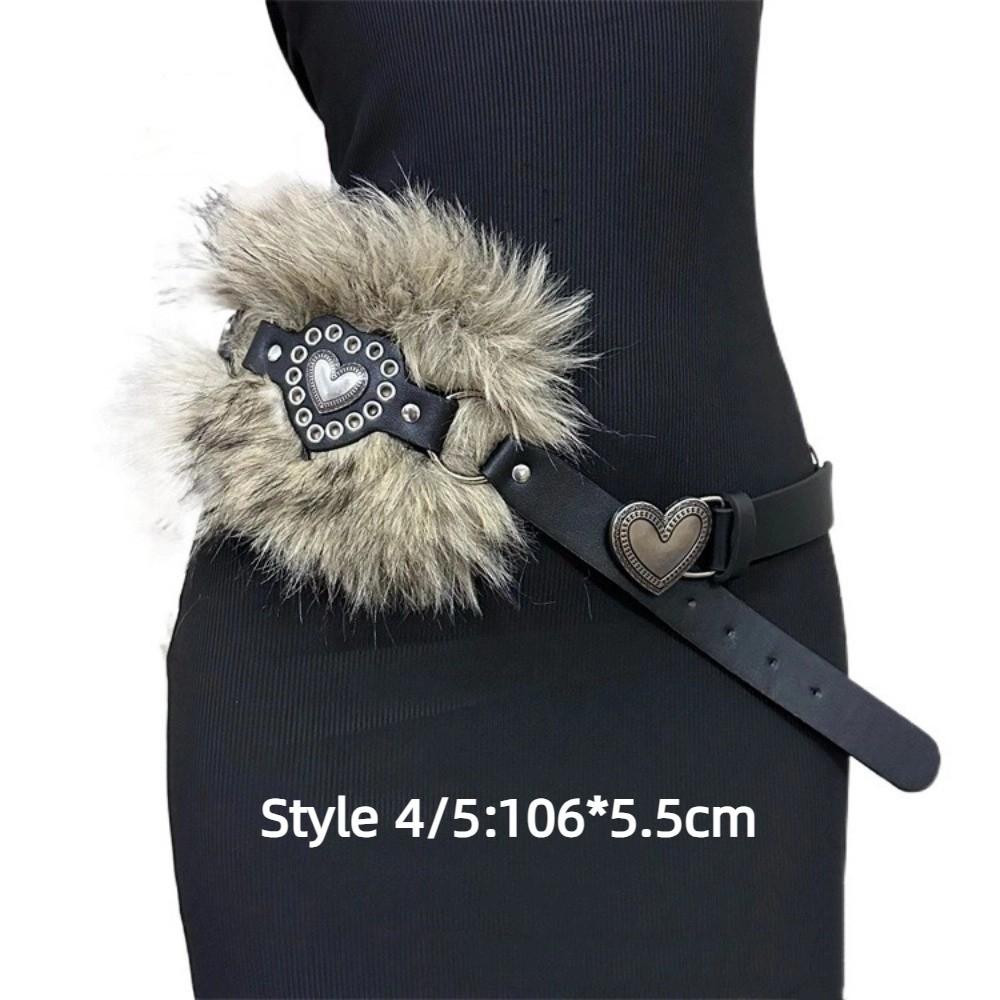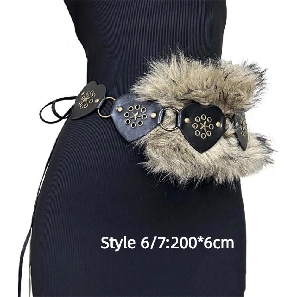 Patchwork Heart Waist Belt Faux Fur Brown Rivet Belt Fashion Women Waistband Waist Accessories