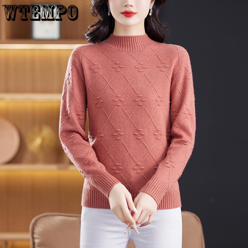 Женский свитер с полувысоким воротником, осенне-зимний пуловер, вязаный свитер для мамы среднего возраста