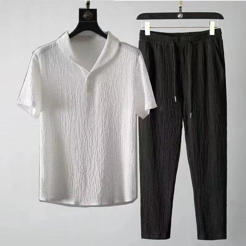 Мужской летний комплект из двух предметов, пляжная одежда, уличная одежда, однотонный свитер с коротким рукавом, рубашка поло, укороченные брюки, спортивная одежда, мужской повседневный костюм — купить товар онлайн с бесплатной доставкой по всему миру!