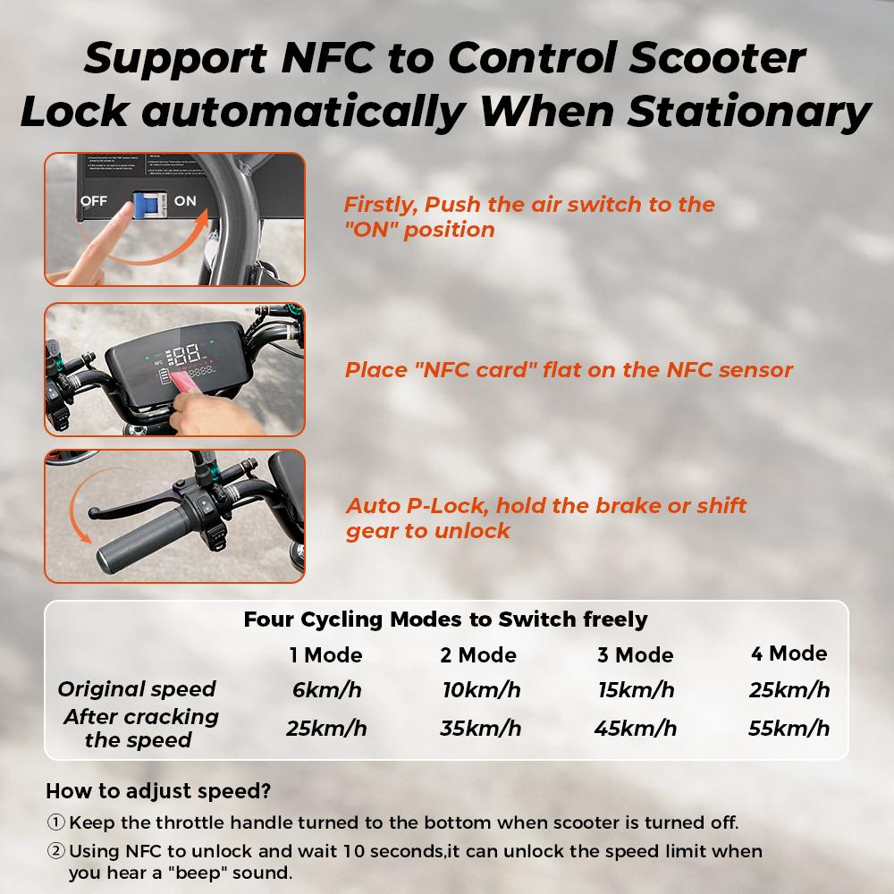 Контролируйте свою поездку с помощью полноцветного 9-дюймового ЖК-экрана, отображающего скорость, уровень заряда батареи и системные предупреждения.. Электросамокат DX5 для взрослых также включает разблокировку по NFC и встроенную сигнализацию, что добавляет расширенную защиту от кражи, редко встречающуюся в стандартных электросамокатах.