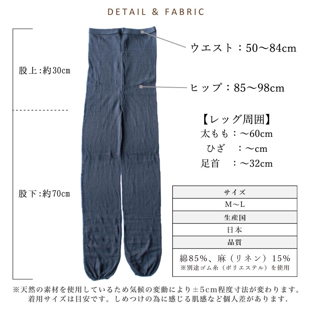 Socks Made in Japan by Japanese Smooth and Natural Materials Light M&M Women's Leggings, Artisans, 10-Length, Cotton, Linen, Thin, Solid, Ramie,