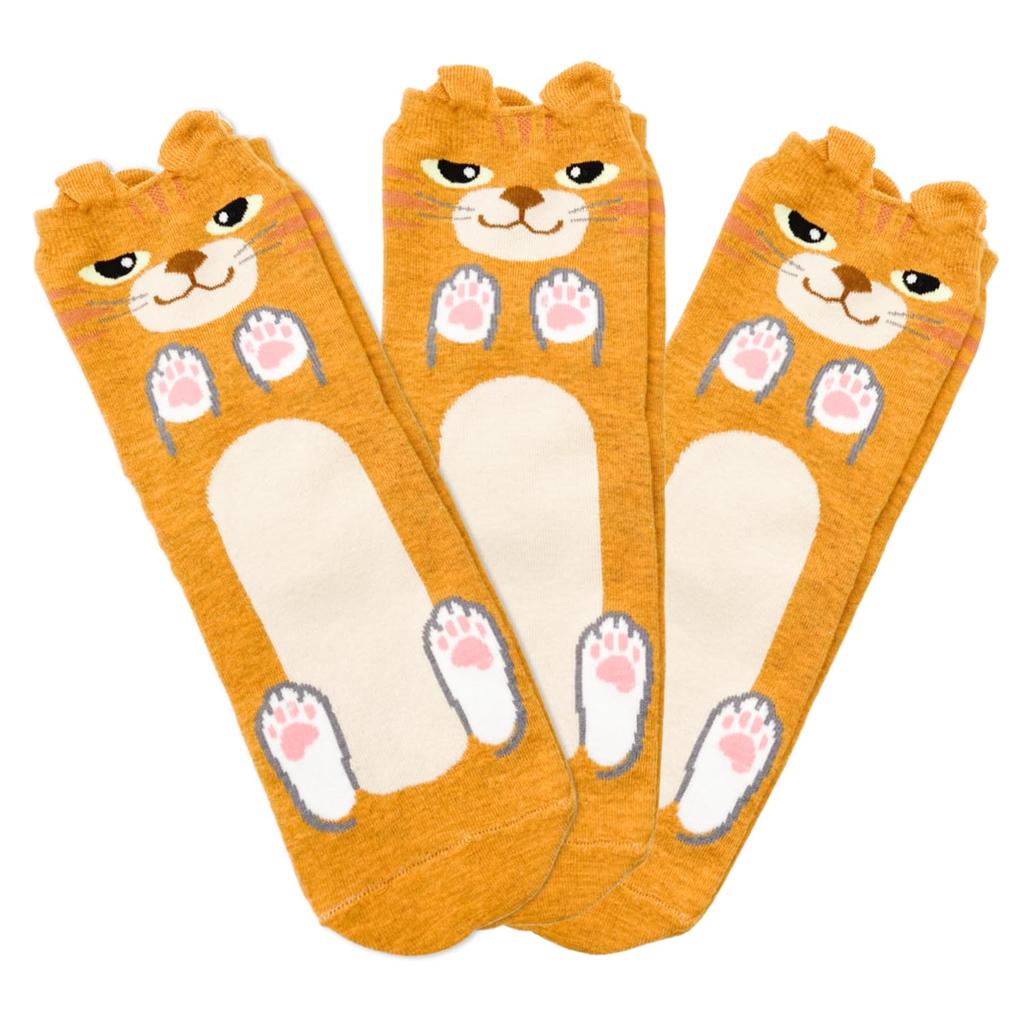 Носки женские с принтом кота и банана, набор из 3 золотых (Апельсиновый, Пары)