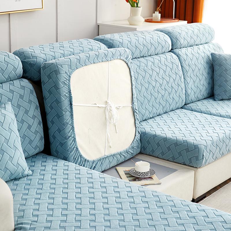 Квадратная жаккардовая наволочка для подушки для гостиной, однотонная эластичная накидка на диван, бархатная накидка на диван, протектор для дивана, чехол на сиденье